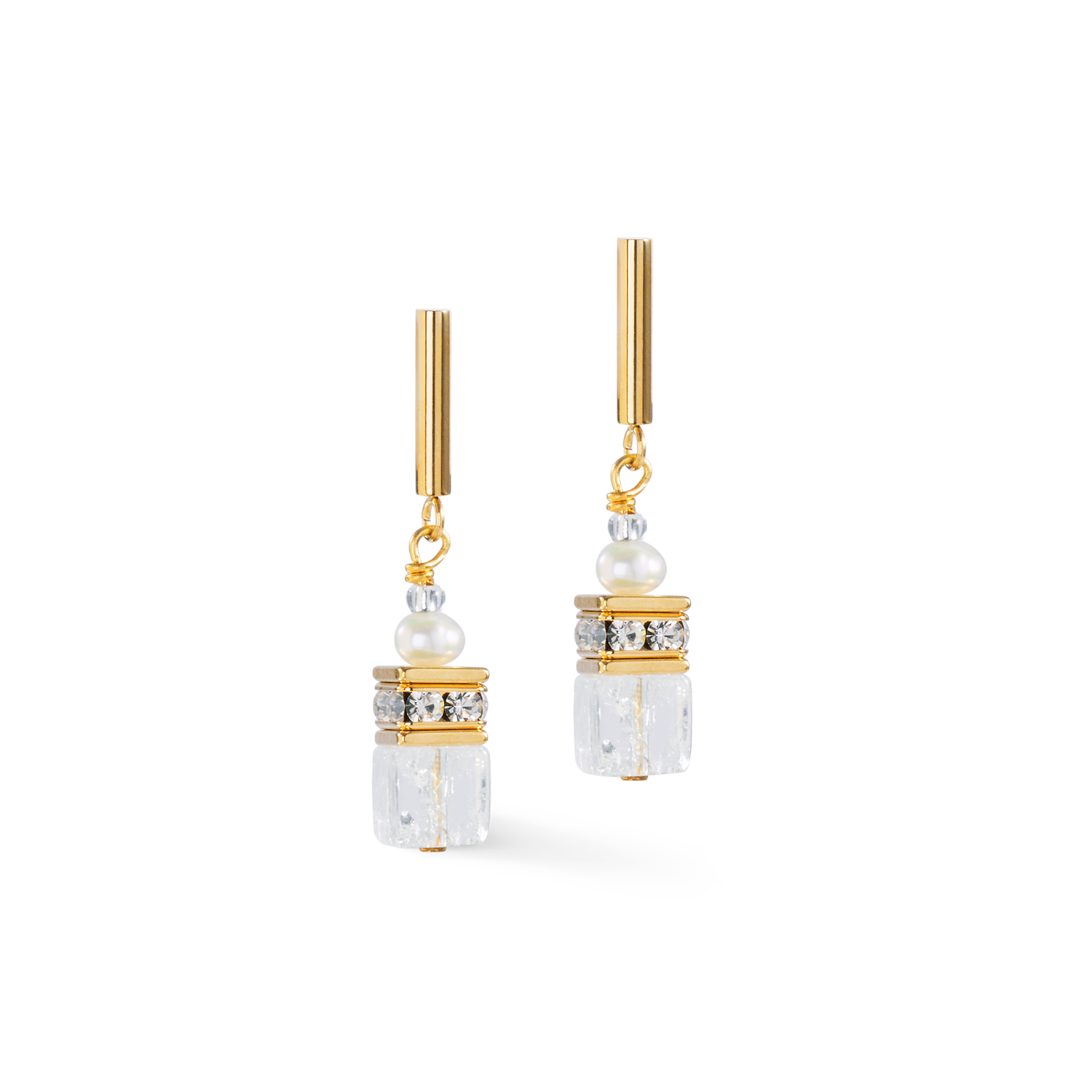 Süsswasserperle Bergkristall Strassrondelle Edelstahl gold