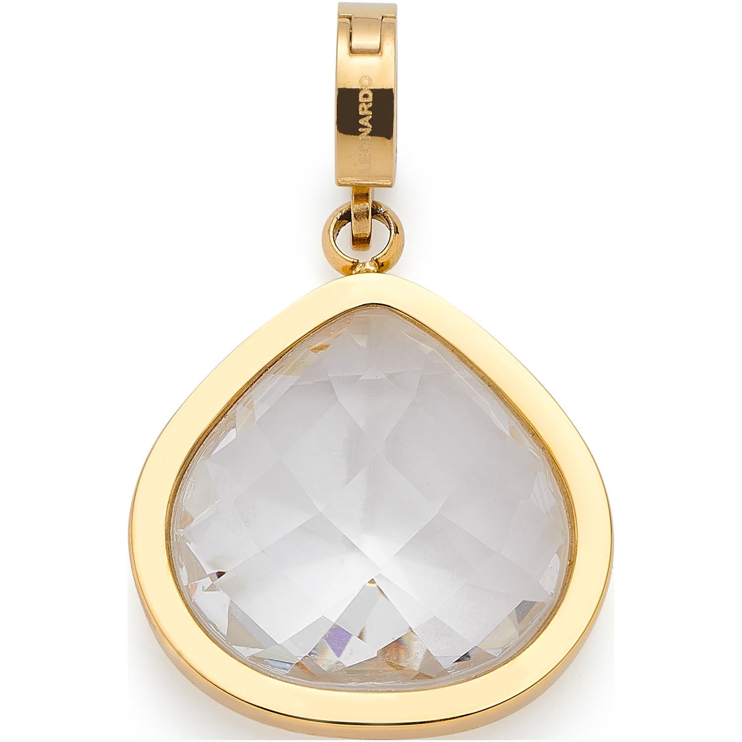 Der Anhänger JUVINGA WHITE begeistert mit schlichter Eleganz und raffiniertem Funkeln. Der facettierte Glasstein in abgerundeter Dreiecksform wirkt farblos und klar, entfaltet aber bei jeder Bewegung ein faszinierendes Lichtspiel. Eingefasst in einen schmalen Goldrahmen setzt dieser mittelgroße Anhänger dezente, aber wirkungsvolle Akzente. Mit dem Clip Größe M lässt sich JUVINGA WHITE flexibel an Ketten oder Armbändern befestigen.
