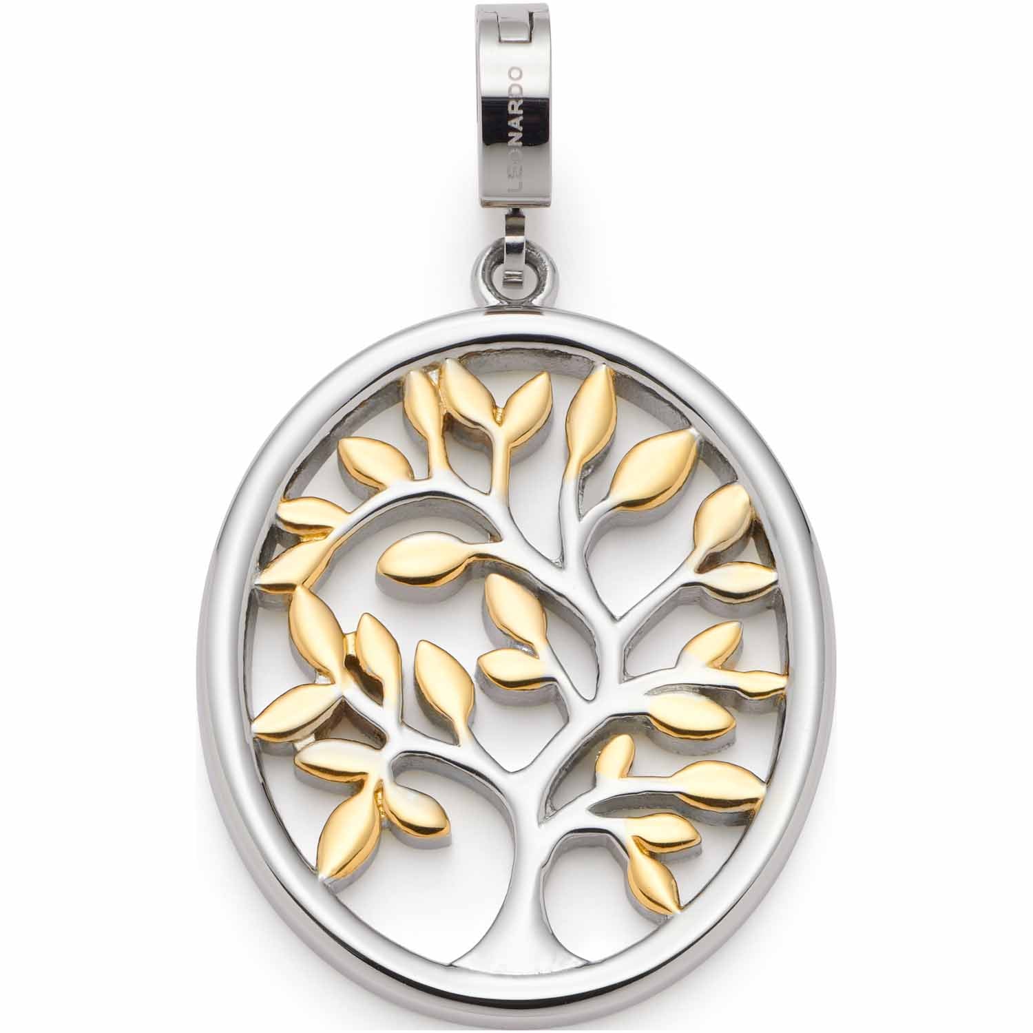 Der ovale Anhänger zeigt sich elegant mit einem kunstvollen Durchbruch-Dekor, das einen Lebensbaum symbolisiert. Fein gearbeitete Blättchen in goldener Ionenplattierung verleihen diesem Schmuckstück einen modernen Bicolor-Charakter. Ein zeitloser Charm, der nicht nur durch seine Schönheit, sondern auch als Symbol der Kraft und des Wachstums begeistert.