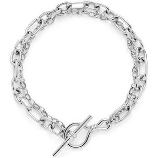 Gegensätze ziehen sich an ? genau damit spielt dieses traumhafte Armand aus der Elisabeth-Serie. Es zeigt sich in einem doppelreihigen Design und mixt eine kräftige, geschliffene Ankerkette mit einer filigranen, feingliedrigen Kette. Beides harmoniert prima miteinander und macht das Armband zum trendstarken Hingucker. Der Knebelring mit Riegel unterstreicht die lässig-elegante Optik und schenkt dem Armband seine entspannte Passform.