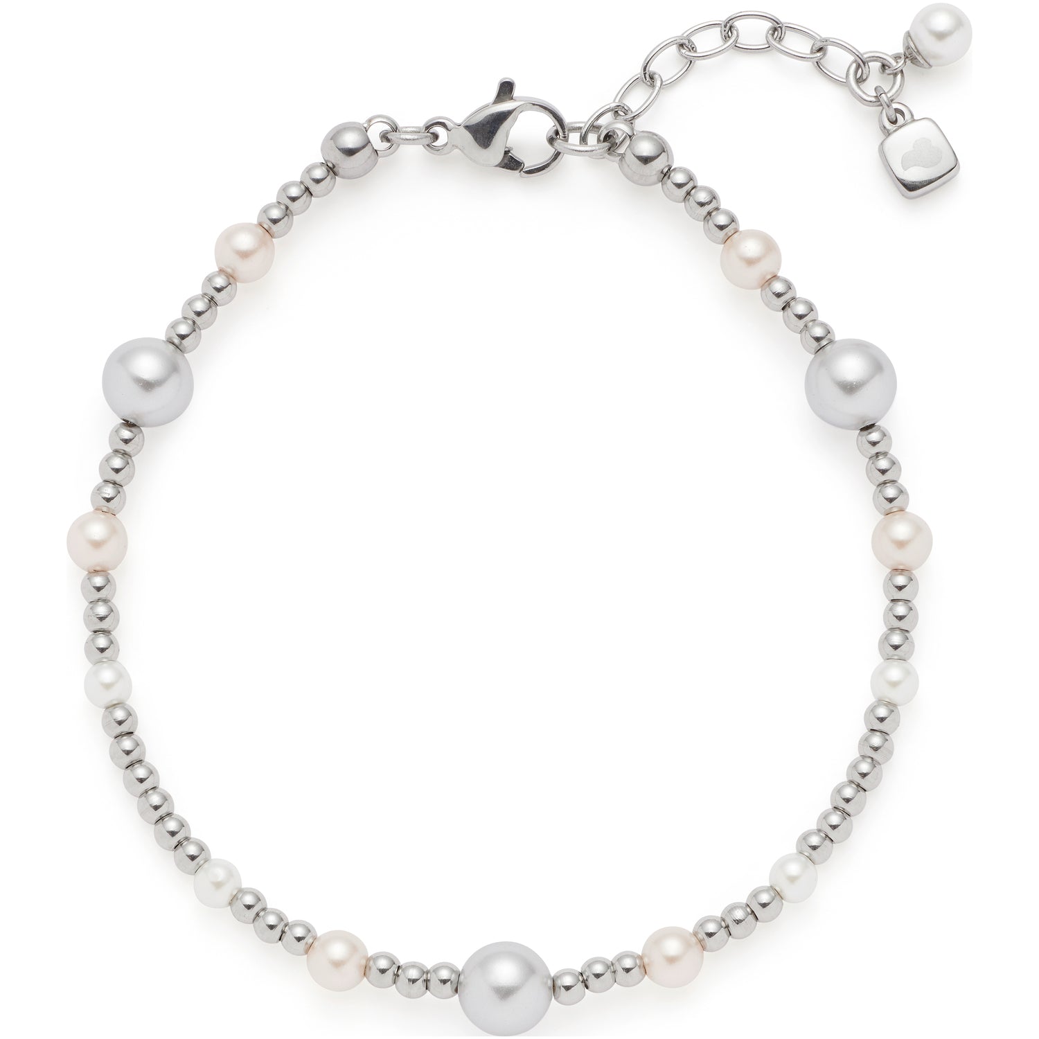 In der Kombination mit der passenden Kette Elsana oder solo getragen - das Armband verzaubert im edlen Perlen-Look. Verschieden große Perlen in Weiß, Creme und Hellgrau vereinen sich hier mit feinen Stahlkügelchen. Als besonderen Feinschliff zeigt sich die Verlängerung mit dem Karabiner mit einer weiteren Perle. Das zarte Armband passt sich wunderbar an und schmeichelt natürlichen Tönen sehr schön.