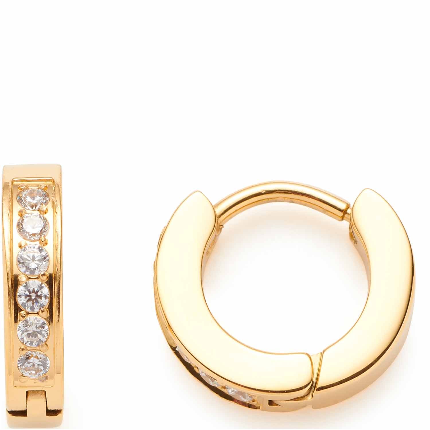 Ear Stacking-Fans werden an den zarten Mini-Klapp-Creolen ihre wahre Freude haben. Perfekt geeignet als Zweit- oder Dritt-Ohrring, fallen diese Mini-Creolen durch ihre an der Vorderseite eingesetzten, leuchtend facettierten Zirkonia-Steinchen auf. Natürlich macht dieser herrlich funkelnde Ohrschmuck auch solo getragen richtig was her.