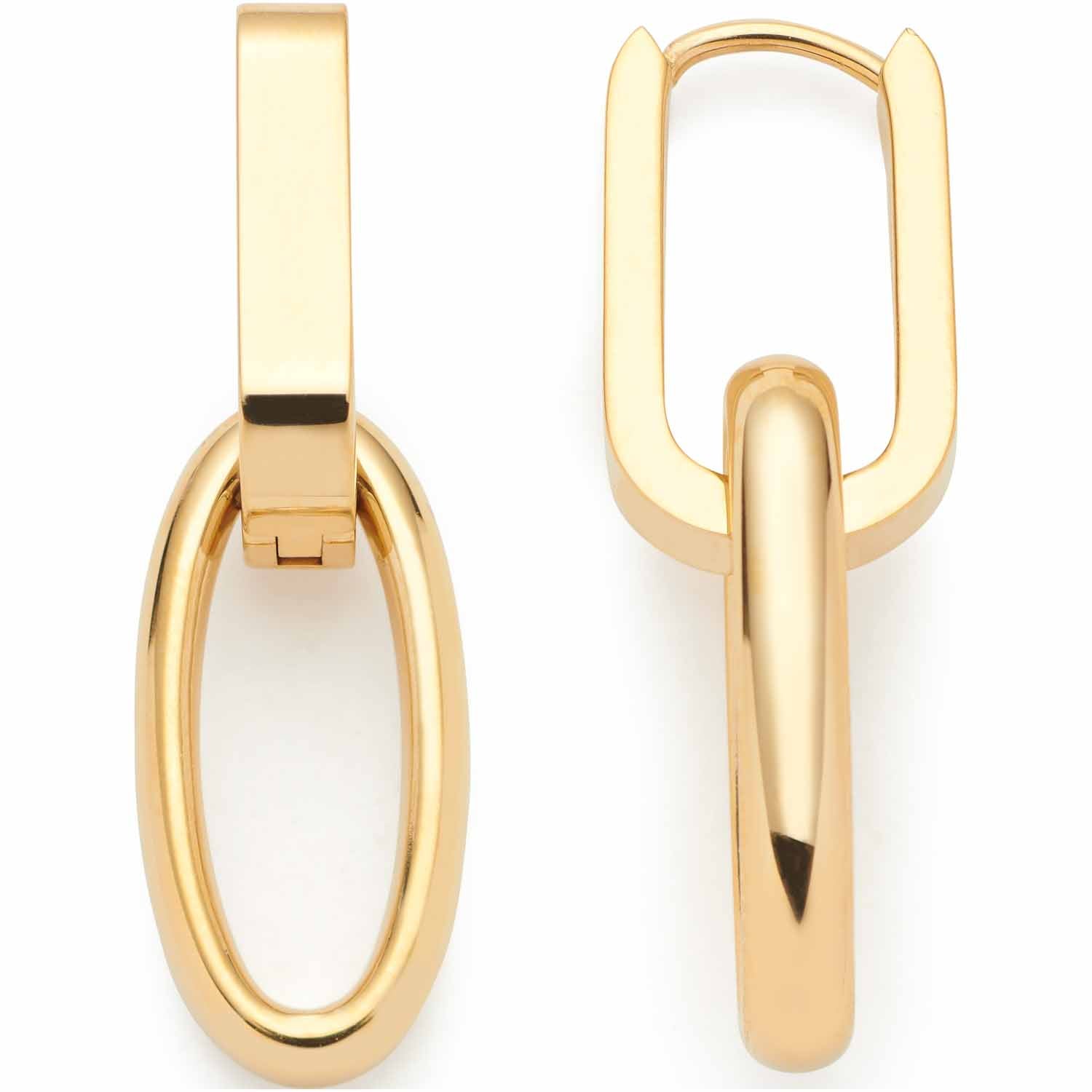 Diese Creolen können im U-Shape mit ihrer Trendorientierung glänzen. In die Creolen sind ovale Kettenglied-Anhänger lose eingehangen, die die Form der passenden Halskette und des Armbandes wieder aufgreifen. Bei Bedarf können die Anhänger herausgenommen werden und die Creolen als schlichte Basics zu allem getragen werden.