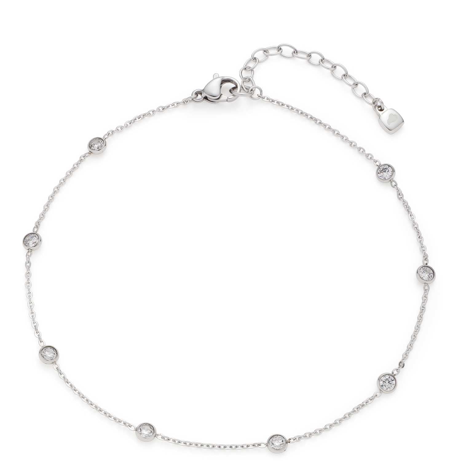 Sandalen, Mules, Slides, Ballerinas: Sommerschuhe wirken umso sommerlicher werden sie von einem feinen Fußkettchen inszeniert. In dieses diamantierte Ankerkettchen mit Karabinerverschluss und Verlängerungskettchen sind in regelmäßigen Abständen facettierte Glaskristalle in zarter Edelstahl-Fassung eingehängt. Damit lassen sich Sonnenstrahlen am besten einfangen.