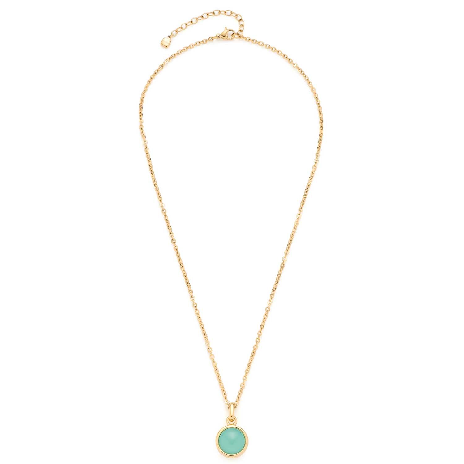 Die lagunenblaue Farbe des opaken Glascabochons, welcher von einem weich ausgeformten, runden Anhänger gehalten wird, ist ein echter Blickfang und erhebt diese kurze Halskette zu einem traumhaften Must-have. Die feine, glitzernde Spiegel-Ankerkette schließt mit einem Karabiner ab und lässt sich über ein Verlängerungskettchen regulieren.