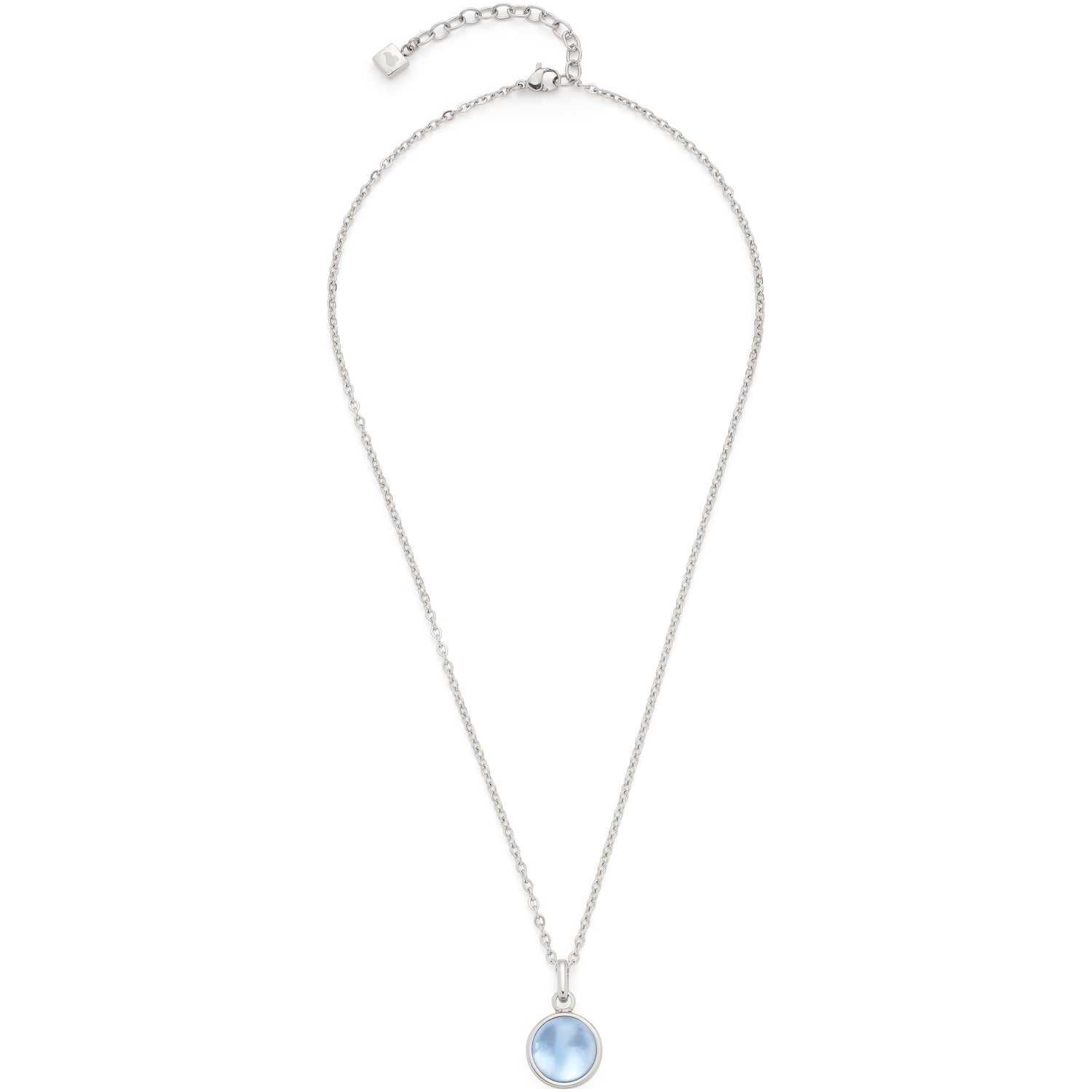 Schön schlicht und damit vielseitig kombinierbar - die Kette gibt zahlreichen Looks einen eleganten Feinschliff. Die kurze, zarte Spiegel-Ankerkette besticht mit einem weich ausgeformten, runden Anhänger. Dieser wird von einem Cabochon aus blauem Glas auf Perlmutt verziert. Mit einem Karabinerverschluss und Verlängerungskettchen passt sich die Kette optimal an. Das blau-graue Design der Kette harmonieren vor allem mit kühlen Nuancen und wirkt so besonders harmonisch.