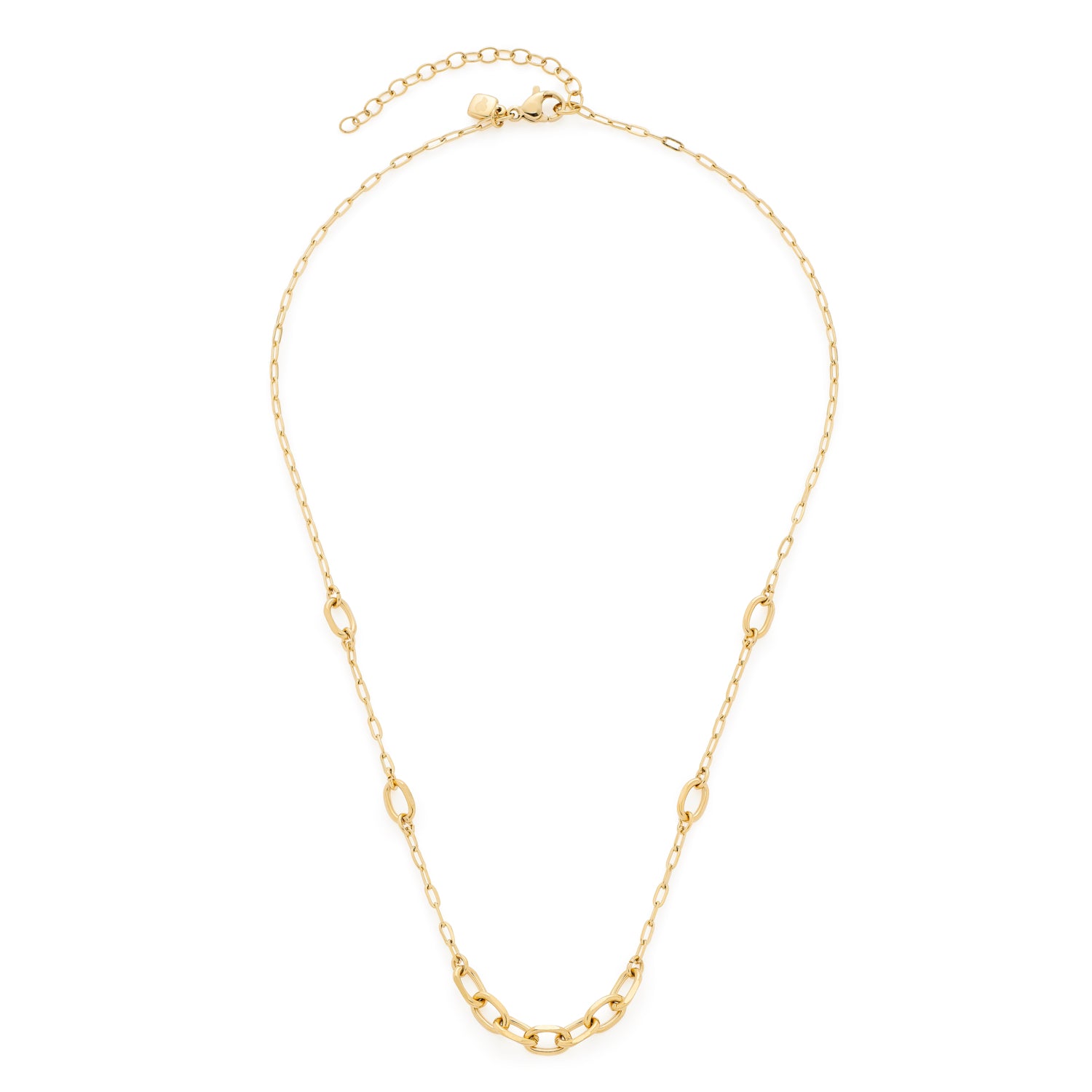 Edelstahl mit goldener Ionenplattierung·Mix aus verschieden großen Kettengliedern·Karabinerverschluss und Verlängerungskettchen