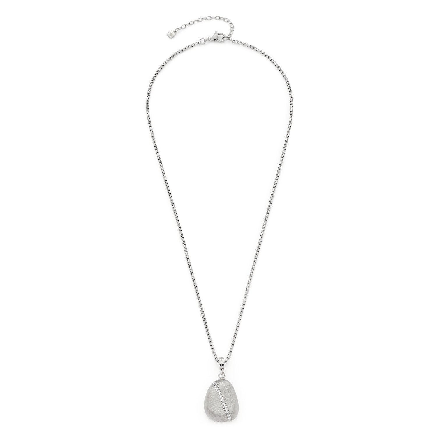Die lange Venezianerkette aus Edelstahl hat einen Anhänger in ihrem Repertoire, der mit kunstvoller Natürlichkeit für Aufmerksamkeit sorgt. Im Design eines Handschmeichlers besitzt der Clip&Mix-Charm eine organische Form und funkelnde, gefasste Zirkonia-Steinchen, die wie Wassertropfen auf der matt gebürsteten Oberfläche aneinandergereiht sind.