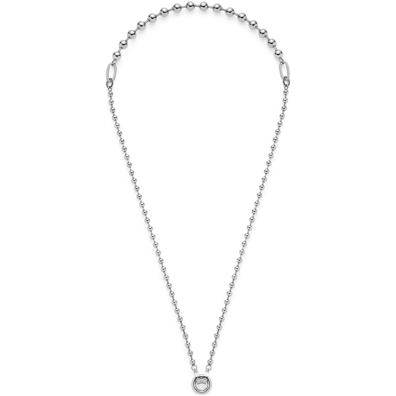 Diese mittellange Kugelkette vereint elegantes Design mit vielseitigen Styling-Möglichkeiten. Die Mischung aus feinen und kräftigeren Kugeln, verbunden durch flache, ovale Ringe, macht sie zu einem besonderen Hingucker. Ob mit Clip-Anhängern oder solo getragen ? die detailreiche Kette überzeugt in jeder Variante. Mit den Clips in Größe M kannst du sie zudem mühelos erweitern, etwa durch das passende Armband. Ein vielseitiges Schmuckstück für deine Looks und jeden Anlass!