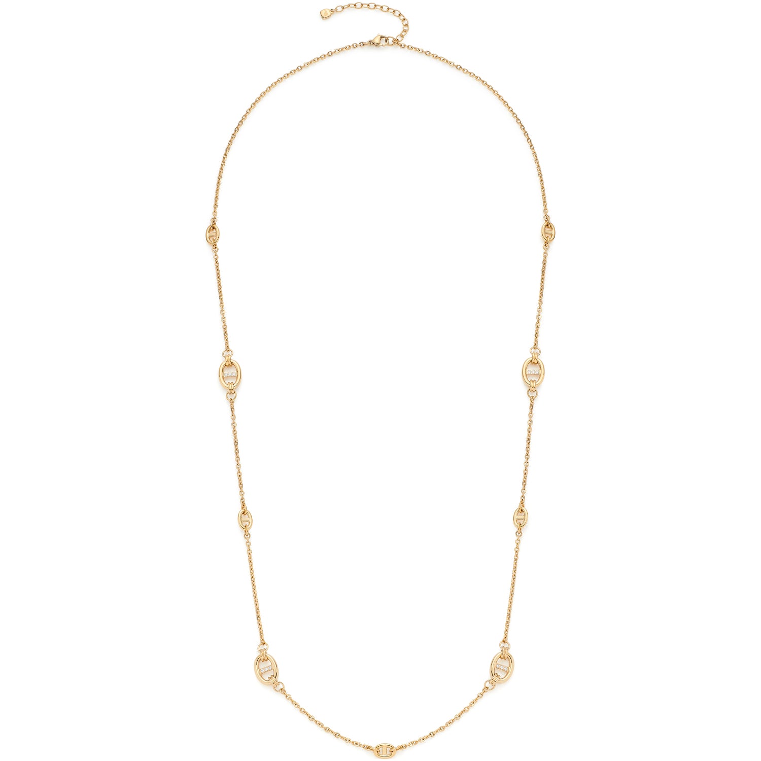 Die lange Kette präsentiert sich mit zwischengesetzten einzelnen Gliedern in Ankerketten-Form. In Abständen sind große und kleine Elemente eingesetzt. Funkelnde Zirkonia Steinchen auf dem Steg der großen Elemente veredeln das Design der Kette zusätzlich. Mit einem Karabinerverschluss und einer Verlängerungskette lässt sich die Kette schön variabel anlegen. Die Kette erweitert jede Schmuckschatulle um einen weiteren, edlen Klassiker.