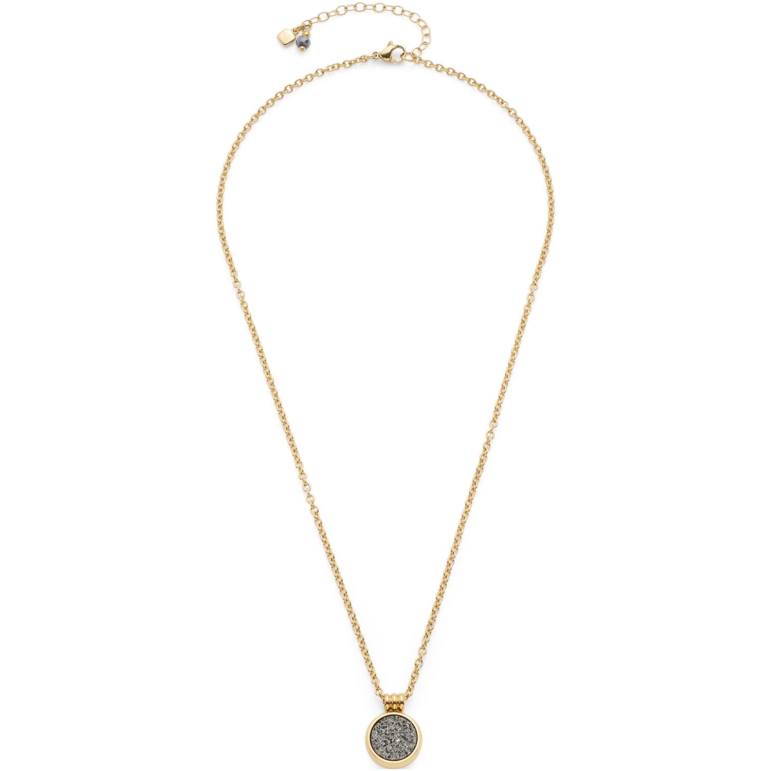 Die Halskette ODELLE verbindet die natürliche Schönheit von Achat mit moderner Eleganz. An der kurzen Weitankerkette hängt ein weich geformter, runder Anhänger, dessen kristalline Oberfläche durch eine Ionenplattierung geheimnisvoll funkelt. Die dreiteilige Aufhängung verleiht dem Design zusätzliche Raffinesse. Ob in schlichter Edelstahl-Optik oder in warmer Goldvariante ? diese Kette ist ein stilvoller Blickfang, der sowohl im Alltag als auch zur festlichen Garderobe glänzt. Dank Karabinerverschluss mit Verlängerungskette lässt sich die Länge flexibel anpassen.