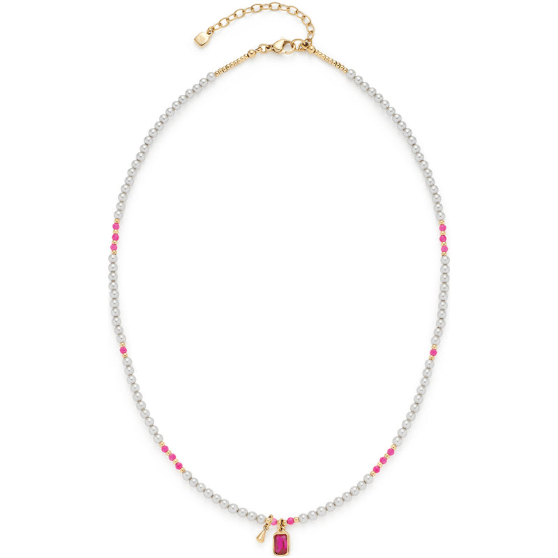 Pink Power! Diese Kette vereint zarte Details mit kräftigen Akzenten. Kleine Imitationsperlen in...