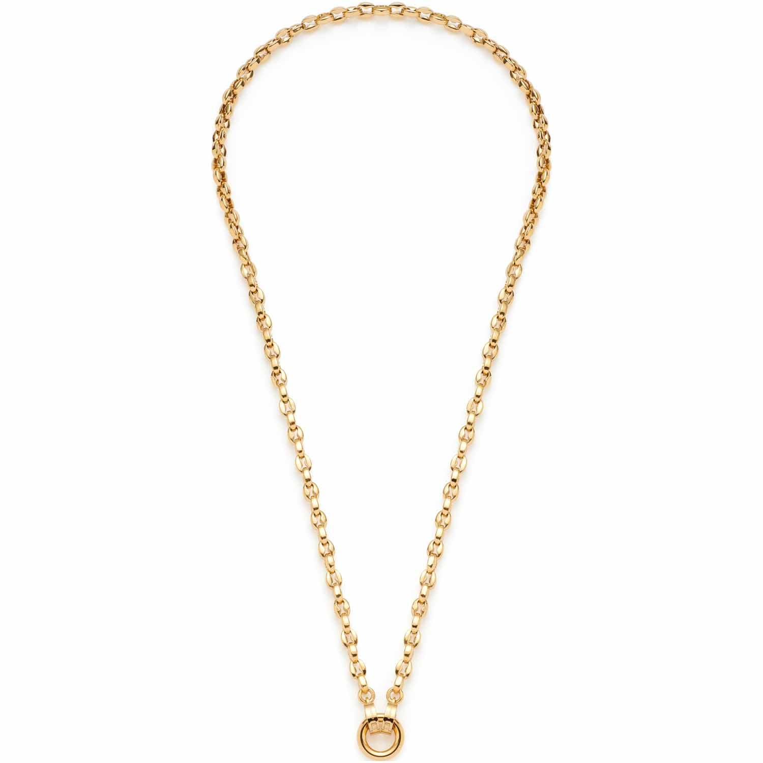 Mariner Link Chains oder auch Schiffsanker-Ketten wurden zuallererst um 1800 von Seefahrern genutzt, um ihre Glücksbringer näher am Herzen zu tragen. Das edle Good-Luck-Statement der Schiffsanker-Ketten ist vielleicht heute weniger populär, dafür aber der stilechte Look der massiven Kettenglieder in ovaler Form umso mehr. Dieses Edelstahl-Collier mit oder ohne goldener Ionen-Plattierung ist 50 cm lang und lässt sich vom passenden Armband mal eben verlängern. Außerdem ist sie die perfekte Halskette für kleine oder große Charms aus der Clip&Mix-Serie. Und so können auch Frauen von heute ihre Glücksbringer nahe am Herzen tragen.