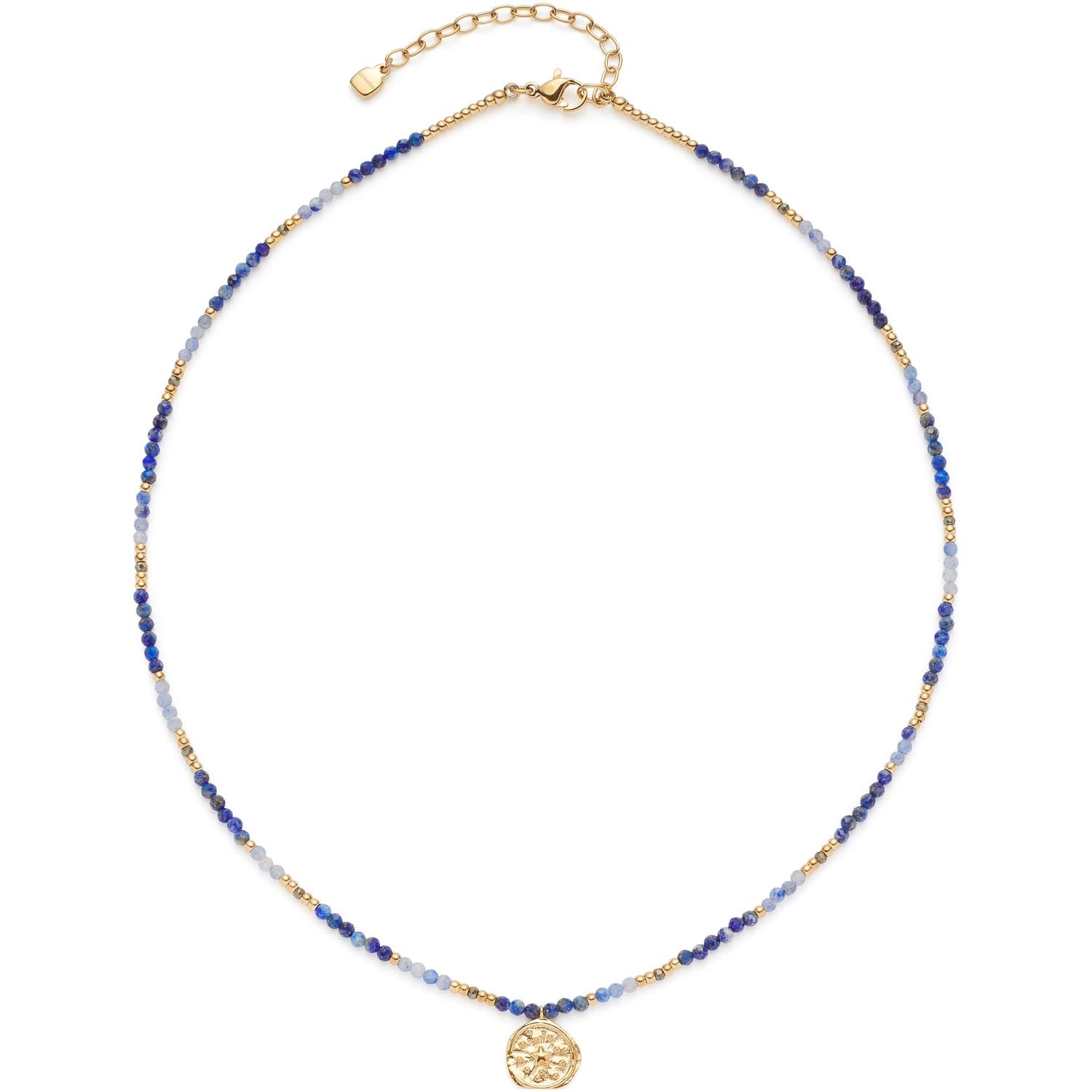 Stilvolle Kombination aus Natursteinen in Blautönen und goldenen Details·Charakteristischer MünzAnhänger als eleganter Eyecatcher·Verstellbare Länge durch Karabinerverschluss mit Verlängerung