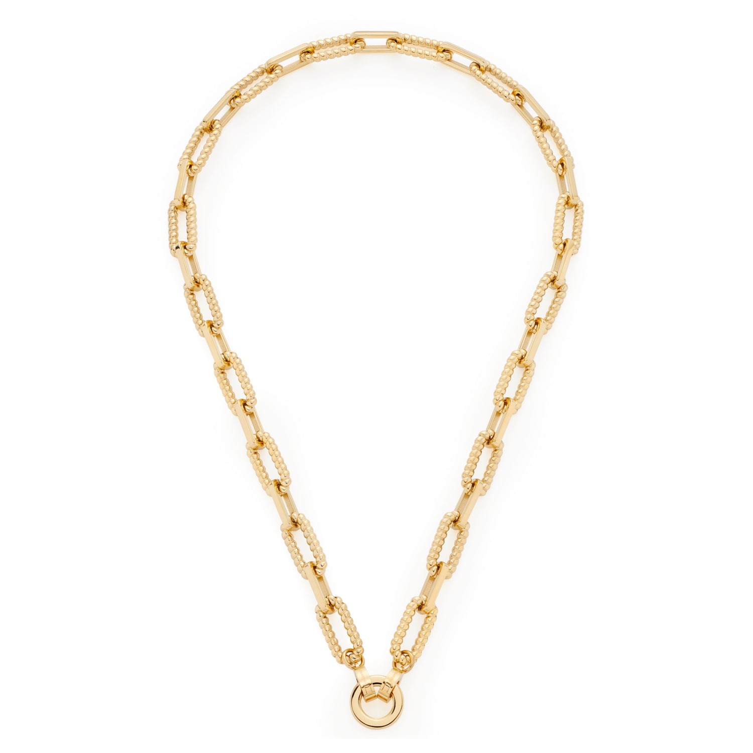 Ein Statement setzen geht mit dieser massiven Halskette ganz leicht. Aussagekräftig genug ist das exklusive Arrangement aus Ankerketten-Gliedern, die mal kurz, mal weit ? mal mit, mal ohne Kordelstruktur garantiert alle Blicke auf sich ziehen. Wer seinem Look einen opulenten Anstrich verleihen möchte, ist bei diesem Collier goldrichtig.