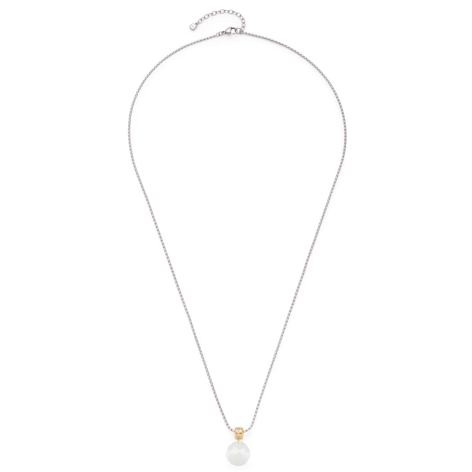 Eleganz wurde hier in ein zeitlos schönes Schmuckstück gefasst. Die mittellange Rund-Ankerkette mit Karabinerverschluss und Verlängerungskettchen ist die Trägerin eines opulenten Catseye-Kugel-Anhängers, dessen golden ionenplattiertes Rondell mit eingefassten, klaren Zirkonias besetzt ist. Der Facettenschliff von Perle und Steinchen verleiht dem Anhänger ein schönes Funkeln.