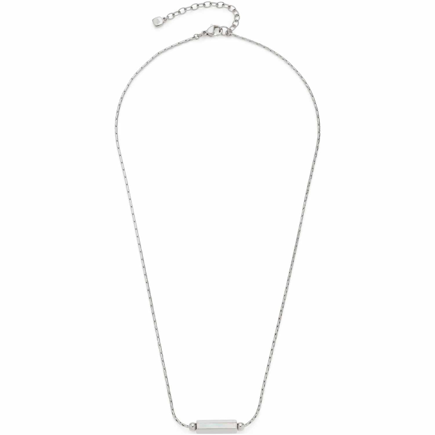 Die zarte und anschmiegsame Rundankerkette präsentiert sich als zeitlos elegantes Accessoire. Das Highlight befindet sich im Dekolleté-Bereich, wo eine frei bewegliche Zylinder-Perle im Hexagon-Profil als Anhänger fungiert. Diese Perle ist auf zwei Seiten mit weißem Perlmutt verziert, während die anderen Seiten Raum für eine individuelle Gravur bieten. Neben dem Zylinder sind runde Edelstahlperlen fixiert, die einen sanften Übergang zur Kette schaffen. Dieses Schmuckstück vereint modernes Crossways-Design mit persönlicher Gestaltungsfreiheit.