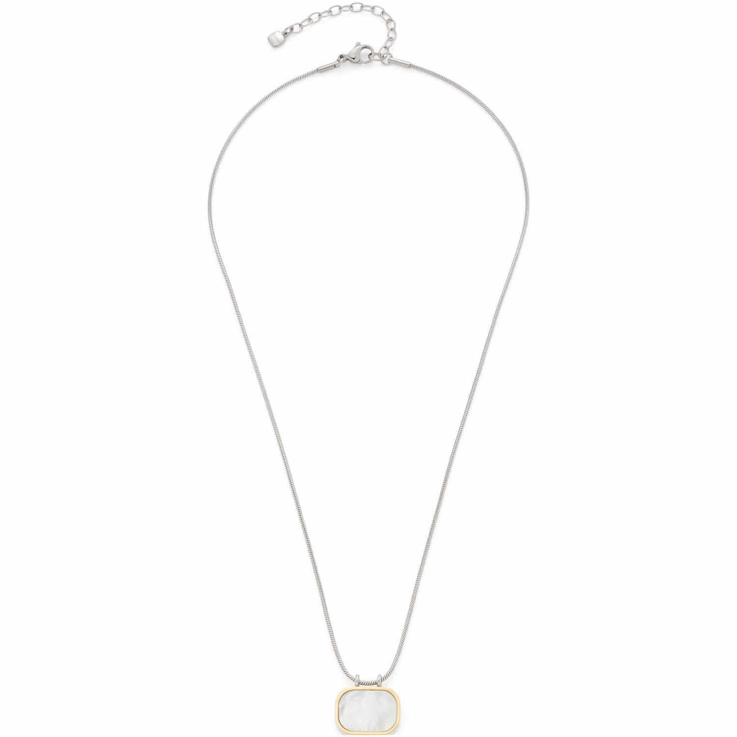 Bicolor-Optiken haben sich in der Welt von Colliers, Armbändern und Ohrsteckern einen festen Platz gesichert. Auch diese feine Schlangenkette setzt mit ihrem Anhänger in stark abgerundeter Rechteckform auf dieses sichere Trend-Design. Der frei schwingende Crossway-Edelstahl-Charm besitzt einen golden ionenplattierten Rand und ist mit weißem Perlmutt ausgelegt. Die anschmiegsame Schlangenkette schließt mit Karabiner und Verlängerungskettchen.