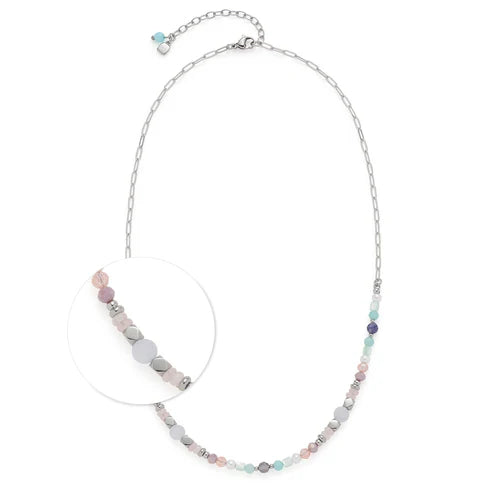 Kühle Töne gepaart mit filigranen Elementen ? diese Kette begeistert durch einen besonders charmanten Mix. Perlen in verschiedenen Formen und Pastelltönen bringen sich hier in den Fokus und werden modern interpretiert. Dieses zeitlose Modell ermöglicht ein vielseitiges Styling, während die besonderen Details wie die Paperclip-Kette eine trendbewusste Note hinzufügen.