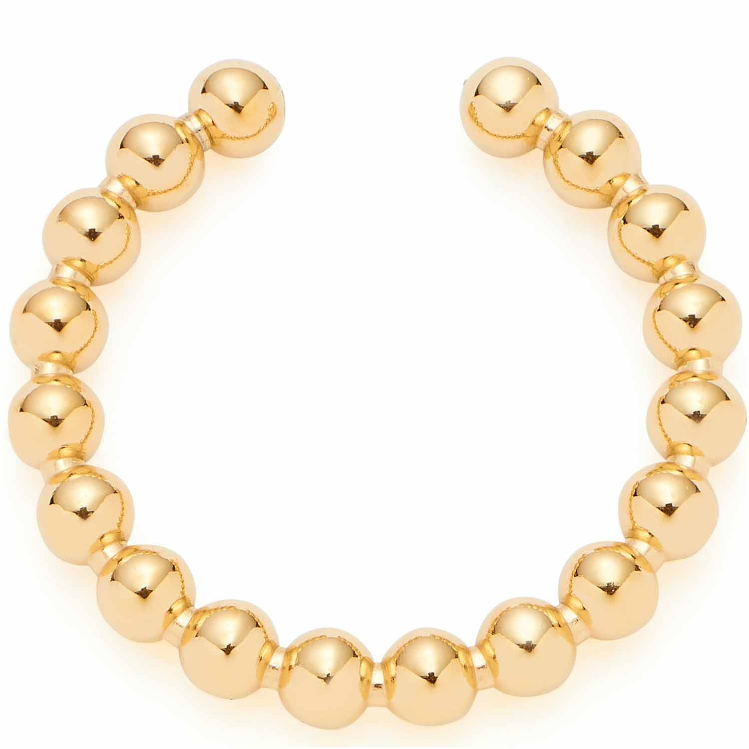 Trendthema Ear-Stacking. Mit dem Earcuff aus Edelstahl mit goldener Ionenplattierung kann ganz einfach ein Conch-Piercing imitiert werden. Der offene Ring wird dazu einfach eingeklemmt. Er besteht aus aneinandergesetzten, kleinen Edelstahl-Kügelchen und lässt sich problemlos mit anderem Ohrschmuck kombinieren.