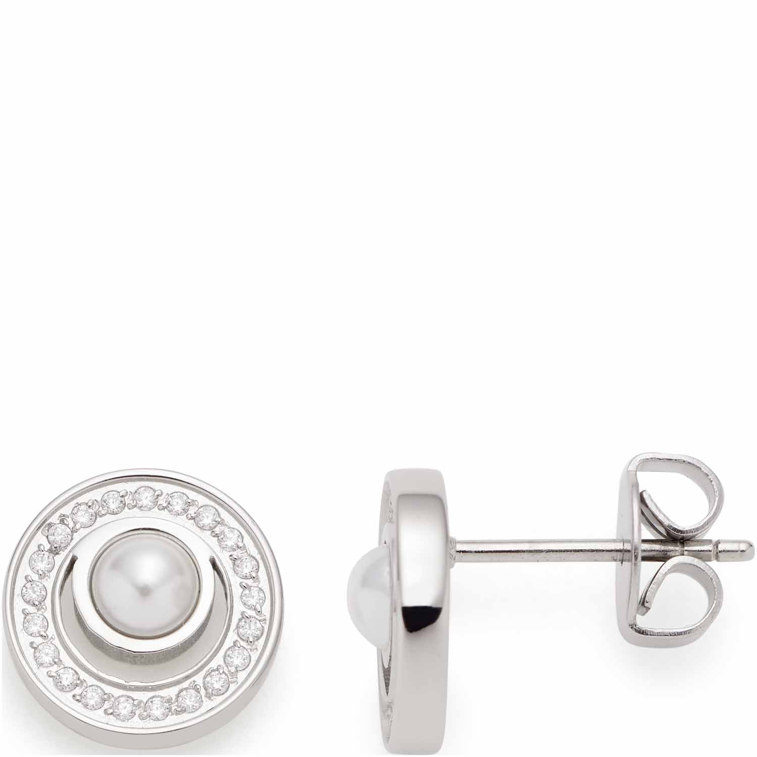 Eine schöne Ergänzung zur passenden Kette Anouka sind diese filigranen Edelstahl-Stecker. Wie auch bei der Kette befindet sich im kreisrunden Design eine weiße Imitationsperle. Facettierte Zirkonia-Steinchen ringsum brechen das Licht und sorgen für einen wunderschönen Funkel-Effekt.