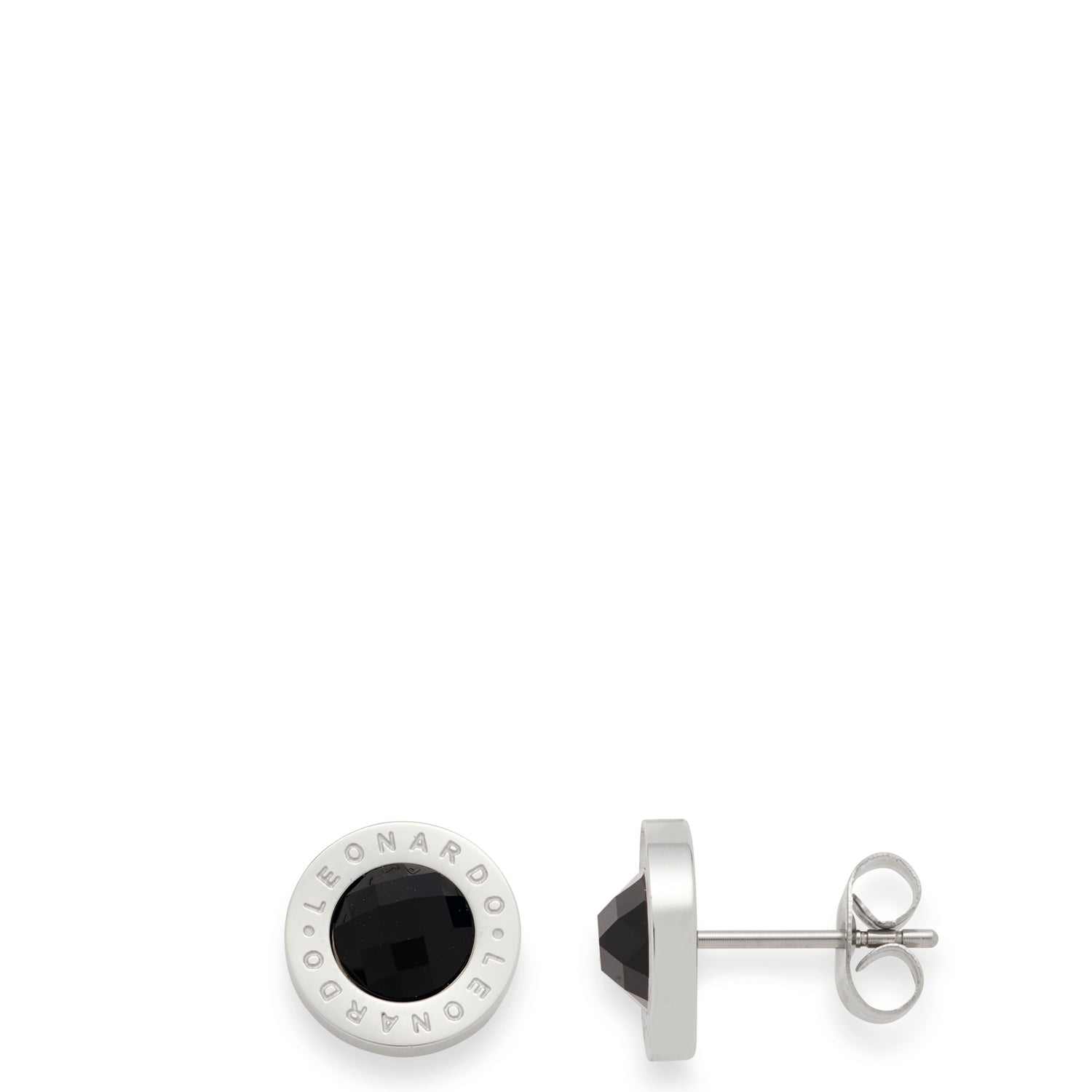 Facettierter Farbglasstein und Edelstahl·als Ohrstecker·Gravurtext: LEONARDO
