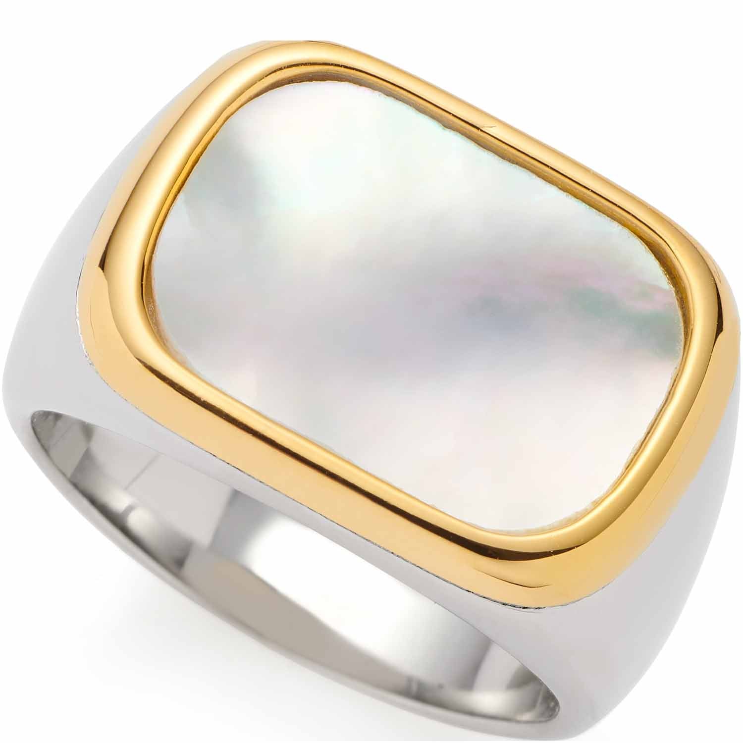 Edelstahl mit und ohne goldener Ionen-Plattierung·weißer Perlmutt·Siegelring-Look