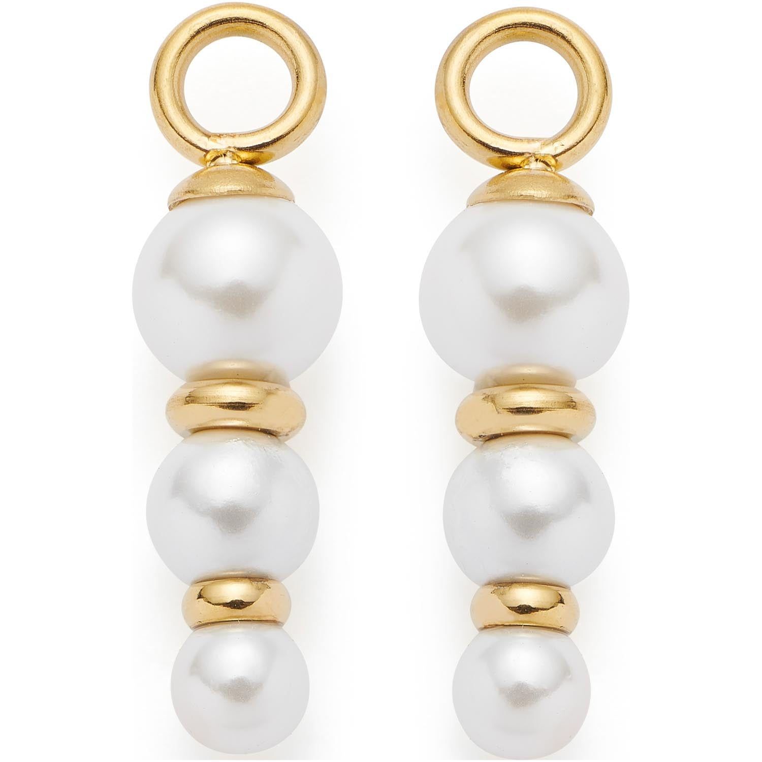 Das Set JUSTINE bringt zeitlose Eleganz an Deine Ohren. Drei edle, natürlich wirkende Perlen in sanftem Größenverlauf reihen sich stilvoll untereinander und werden von feinen, goldfarbenen Scheiben akzentuiert. Mit dem offenen Ring lassen sich die Einhänger ganz einfach an Deine Lieblingskreolen anbringen ? perfekt, um Deinem Ohrschmuck im Handumdrehen einen klassischen, femininen Touch zu verleihen. Ob für den Alltag, das Business-Outfit oder besondere Anlässe ? mit JUSTINE bist Du immer stilvoll unterwegs.