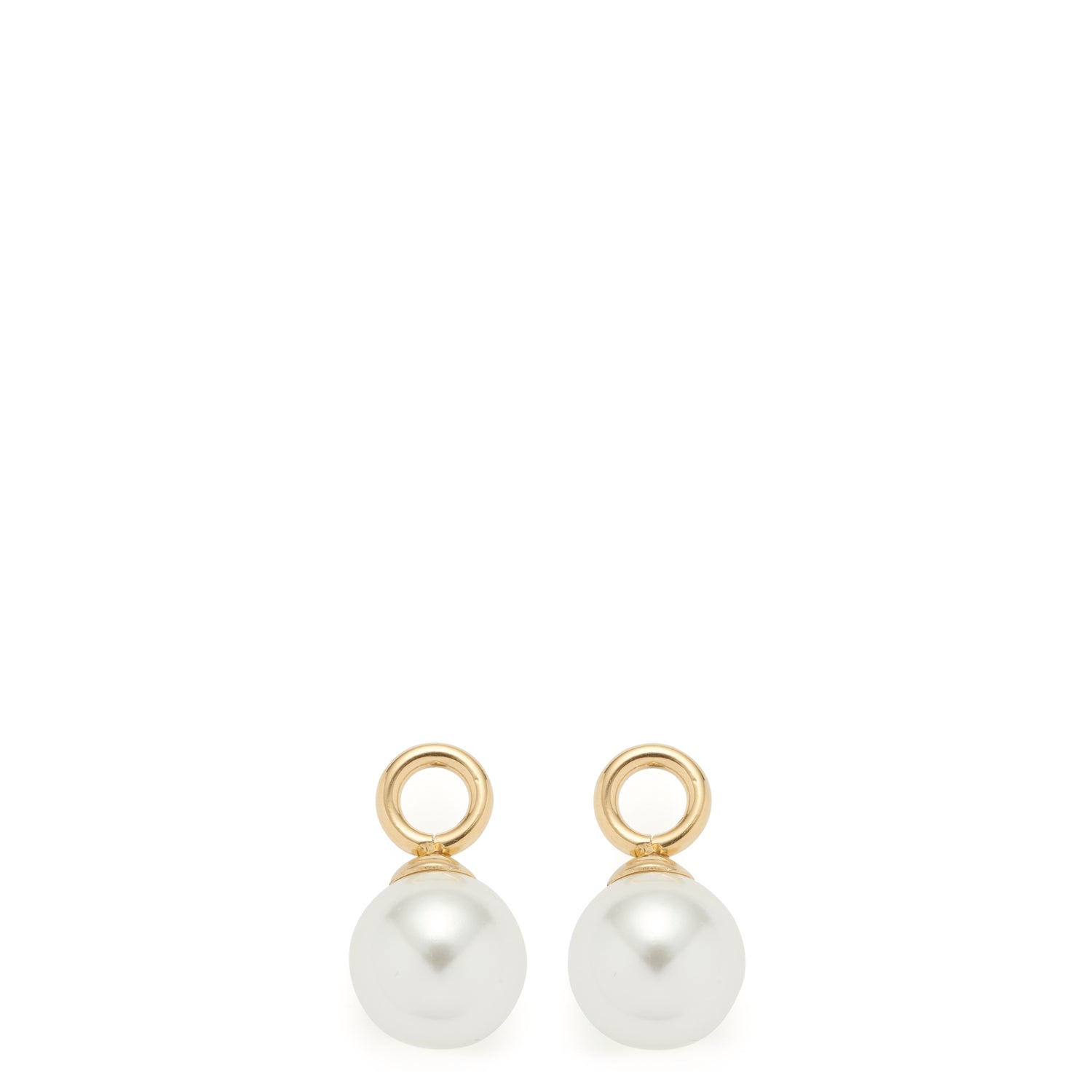 Die kleinen, weißen Imitationsperlen besitzen eine golden ionenplattierte Kappe und sind an ebenfalls golden ionenplattierten Einhänge-Ösen angebracht. Als Beauty's-Anhänger können die Zierperlen so mit Leichtigkeit mal an kleinen, mal an großen Creolen angehangen werden.