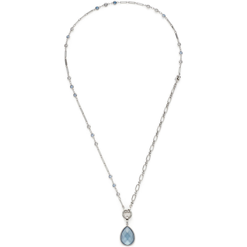 Warum nur ein Style, wenn man auch mehrere auf einmal haben kann. Diese Kette begeistert mit einem integrierten Armband sowie einem Anhänger, den du individuell kombinieren kannst. Ihr Mix aus blassblauen und weißen Glassteinen sowie länglichen Kettengliedern verbreitet eine sommerliche und sehr erfrischende Anmutung. Das Armband fügt sich optimal ein, kann aber auch rausgeclippt und anderweitig gestylt werden, ähnlich wie der Anhänger. Dieser Liebling kann jeden Tag neue gestylt und erfunden werden.