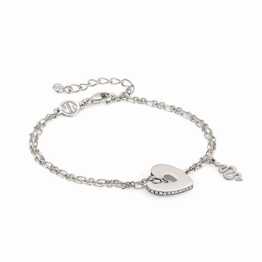 ESSENTIALS Armband aus 925er Silber, dazu ein mit Cubic Zirkonia verziertes Schmuckelement und ein Charm (004_Herz Silber)