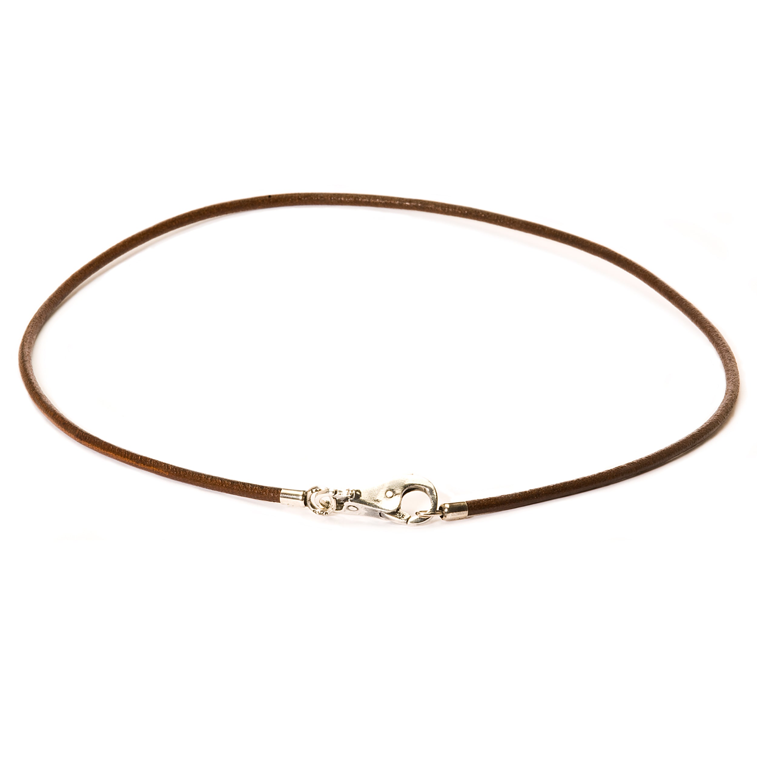 Eine geschmeidige braune Halskette, handgefertigt aus einem Lederstreifen.